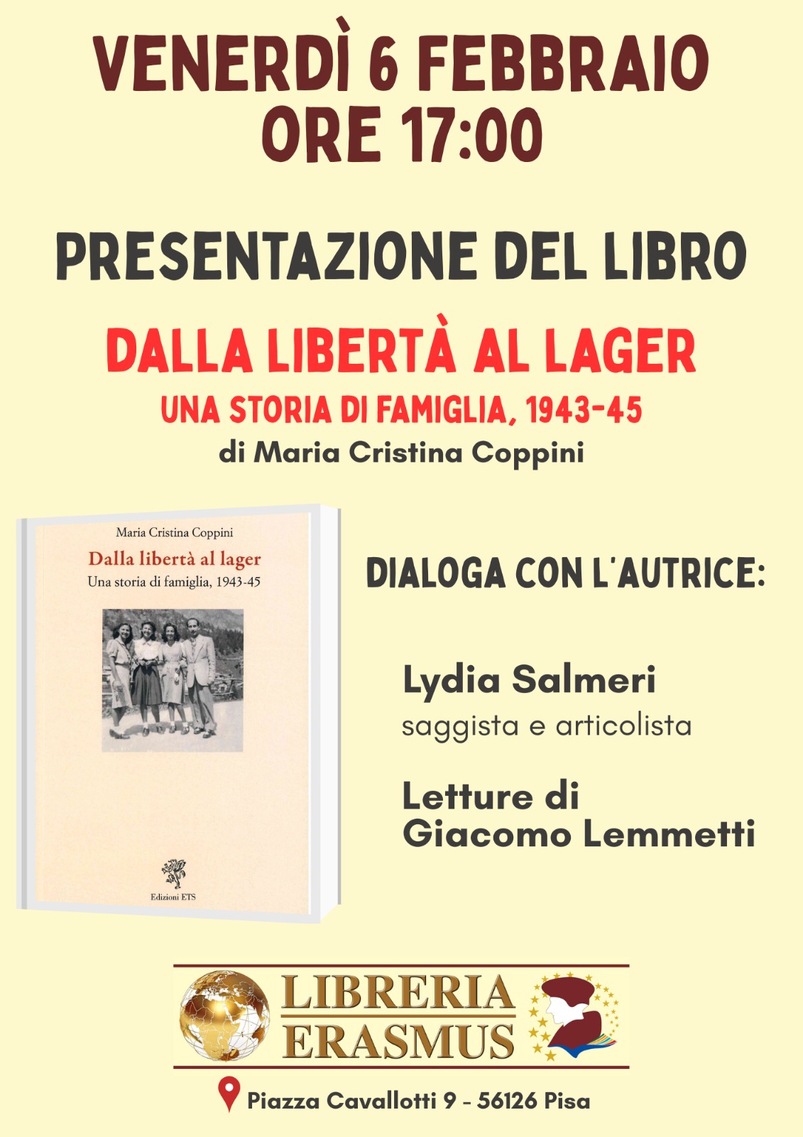 Presentazione del libro della scrittrice e poetessa Cristina Coppini “Dalla liberta’ al lager.Una storia di famiglia, 1943-45” presso la libreria Erasmus.